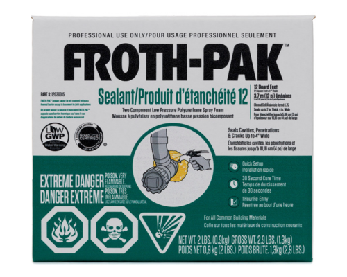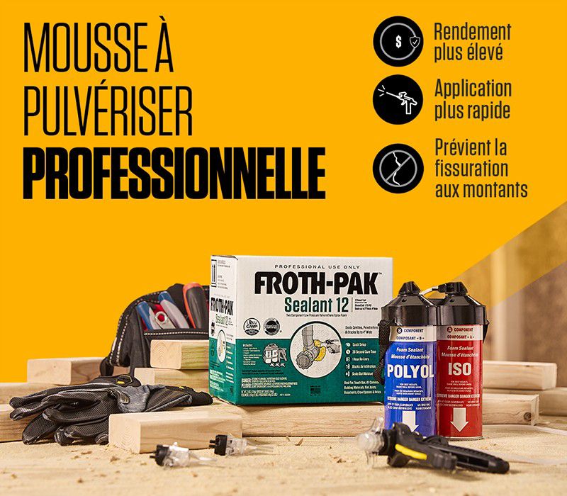 A.La nouvelle solution améliorée et innovante offre une réduction du potentiel de réchauffement de la planète (PRP) de plus de 99 % par rapport aux formulations actuelles. Elle ne contient aucun produit chimique appauvrissant la couche d'ozone ou HFC, mais conserve tous les attributs de performance que les entrepreneurs professionnels attendent de Froth-Pakᴹᶜ. La mousse d'étanchéité à pulvériser Froth-Pakᴹᶜ offre dorénavant un temps de durcissement amélioré, un contenu supérieur en cellules fermées et de nouvelles buses en instance de brevet qui réduisent la surpulvérisation.